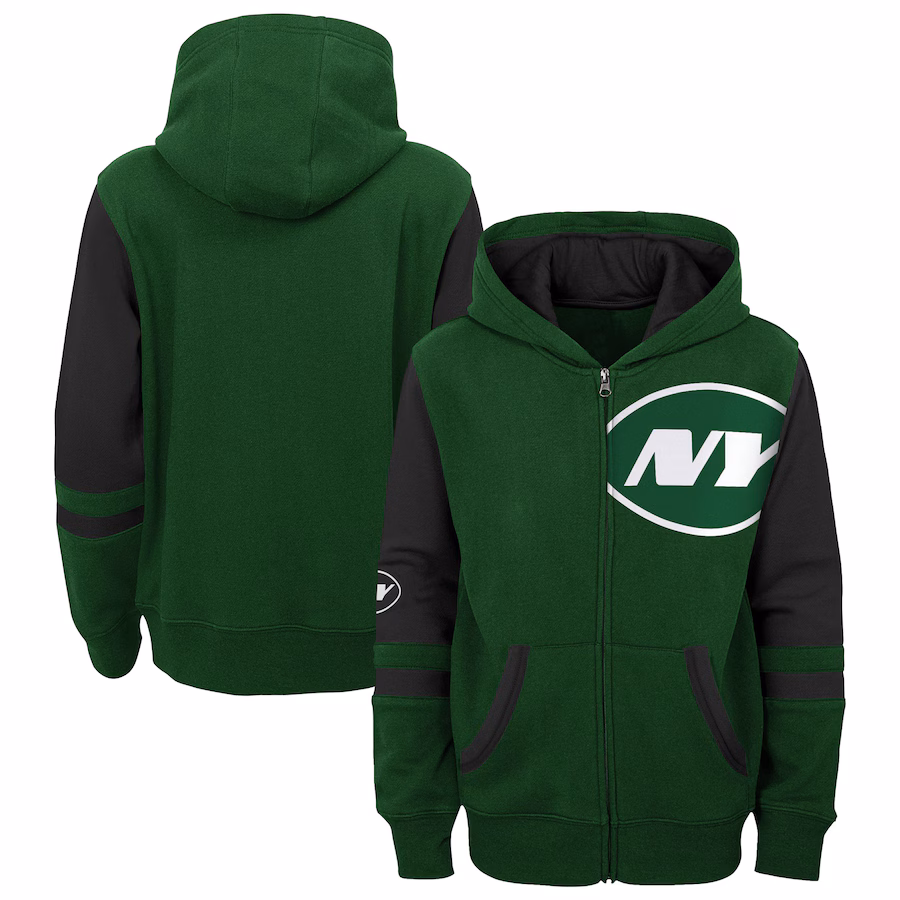 New York Jets Youth Stadium Color-Block Full-Zip Hoodie – Green