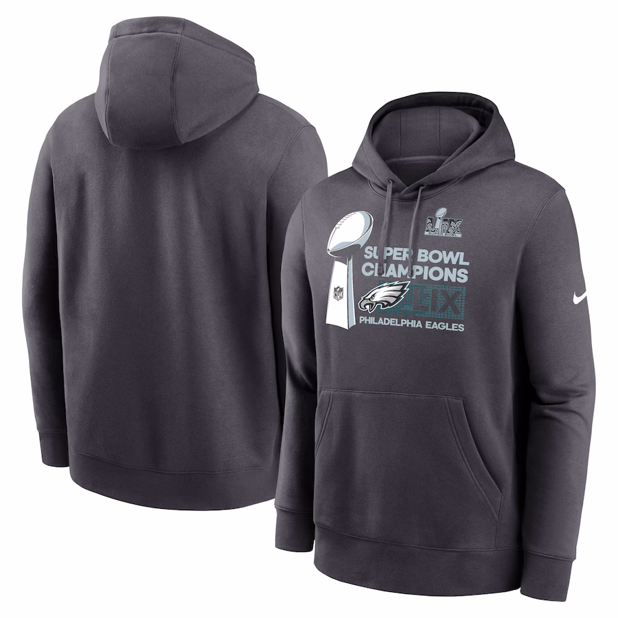 Philadelphia Eagles Nike Super Bowl LIX Champions Locker Room Trophy Collection Club Fleece Pullover Hoodie – Anthracite