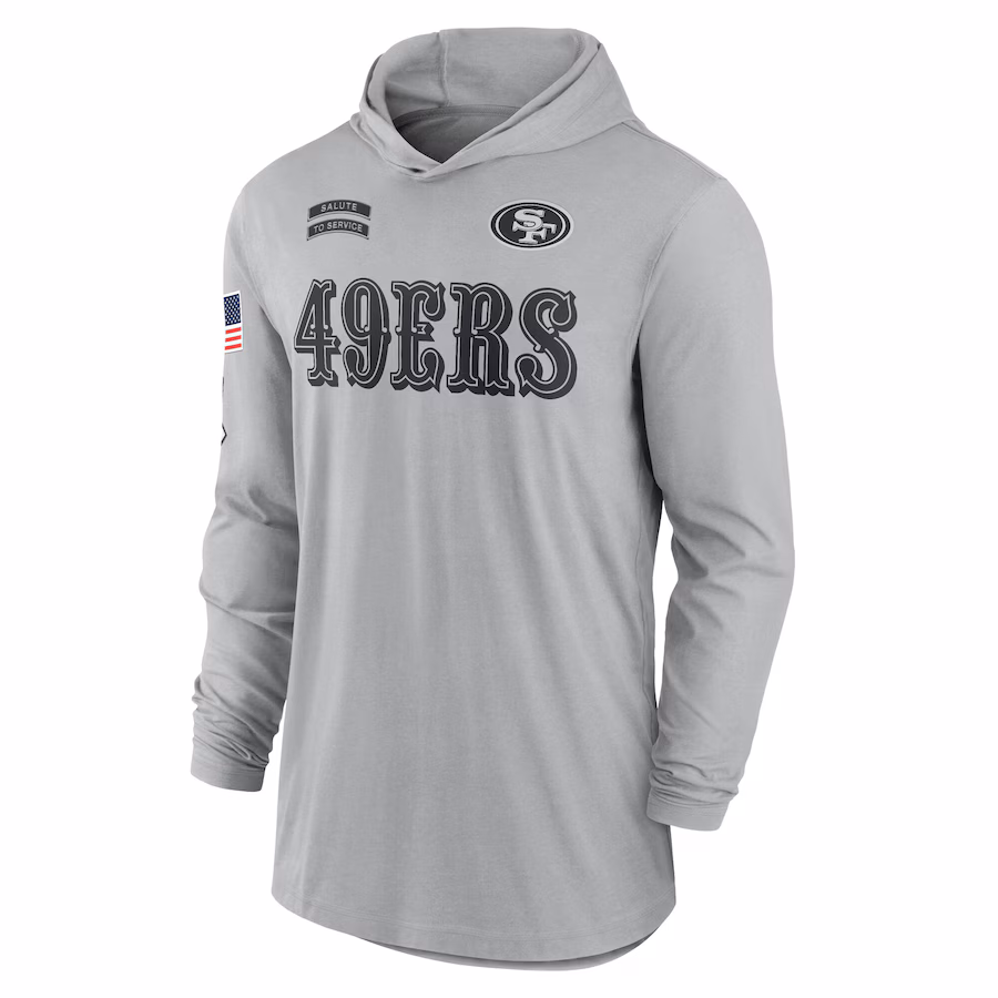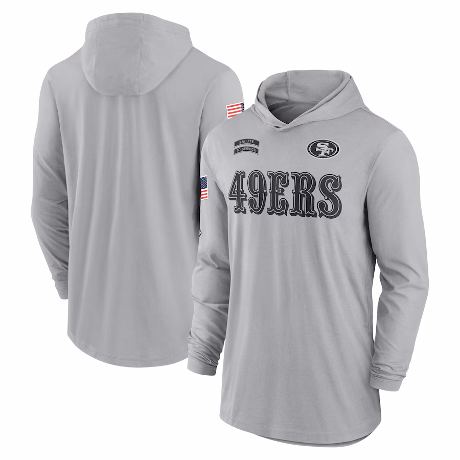 San Francisco 49ers Nike 2024 Salute to Service Lightweight Performance Long Sleeve Hooded T-Shirt – Gray