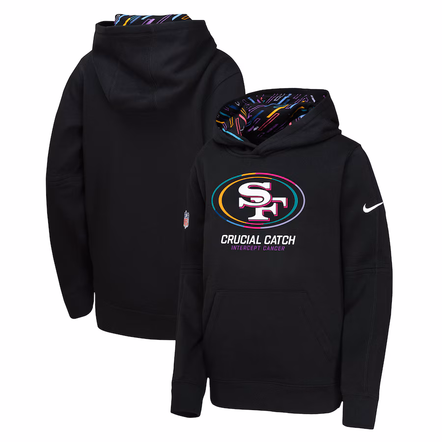 San Francisco 49ers Nike Youth 2024 NFL Crucial Catch Pullover Hoodie – Black