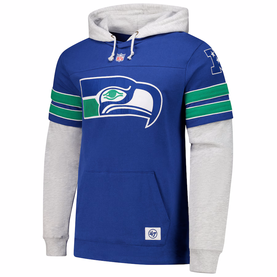 Seattle Seahawks ’47 Double Header Blitz Throwback Cornerback Pullover Hoodie – Royal