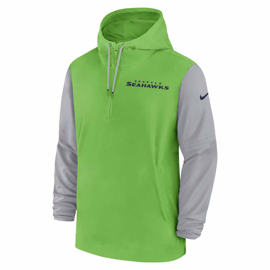 Seattle Seahawks Nike 2024/25 Sideline Pre-Game Player 1/2-Zip Hoodie Jacket – Neon Green/Gray