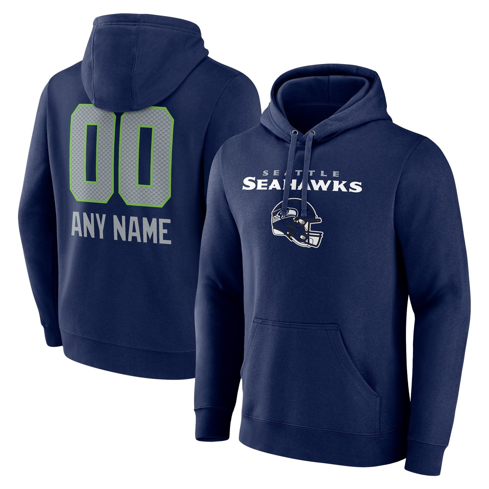 Seattle Seahawks Personalized Name & Number Team Wordmark Pullover Hoodie – College Navy