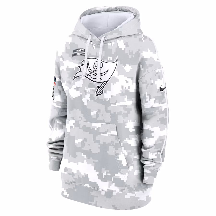 Tampa Bay Buccaneers Nike Women’s 2024 Salute To Service Club Fleece Oversized Pullover Hoodie – Arctic Camo