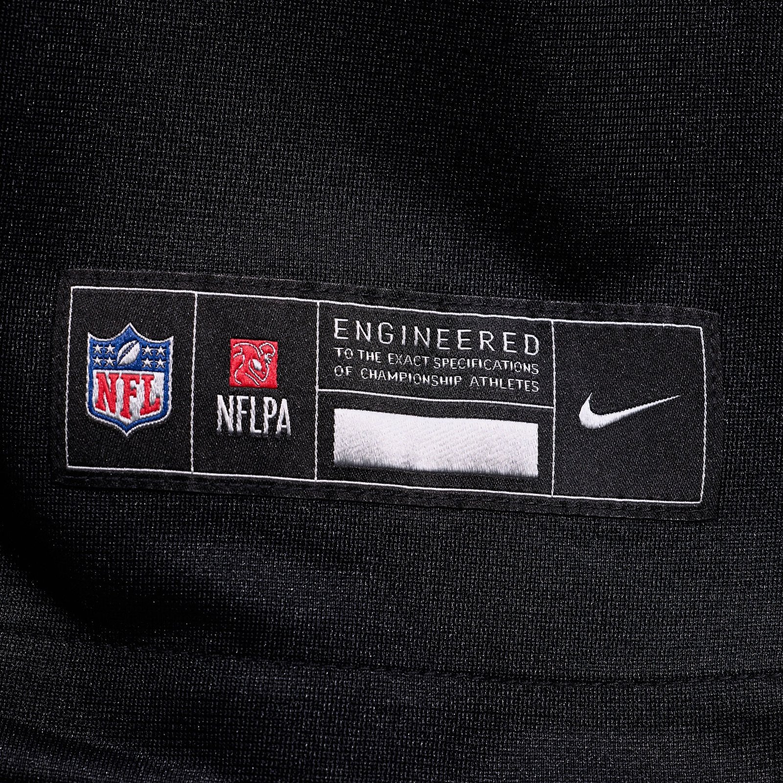 - Sewn-on NFL Shield at collar and satin twill woven jock tag at hem