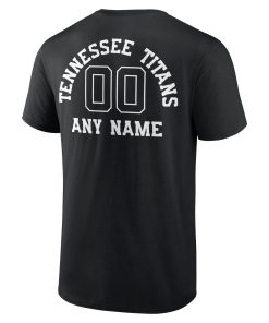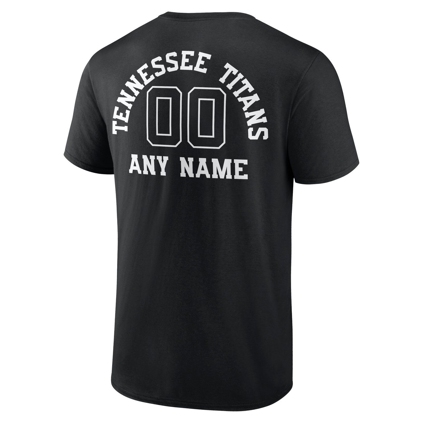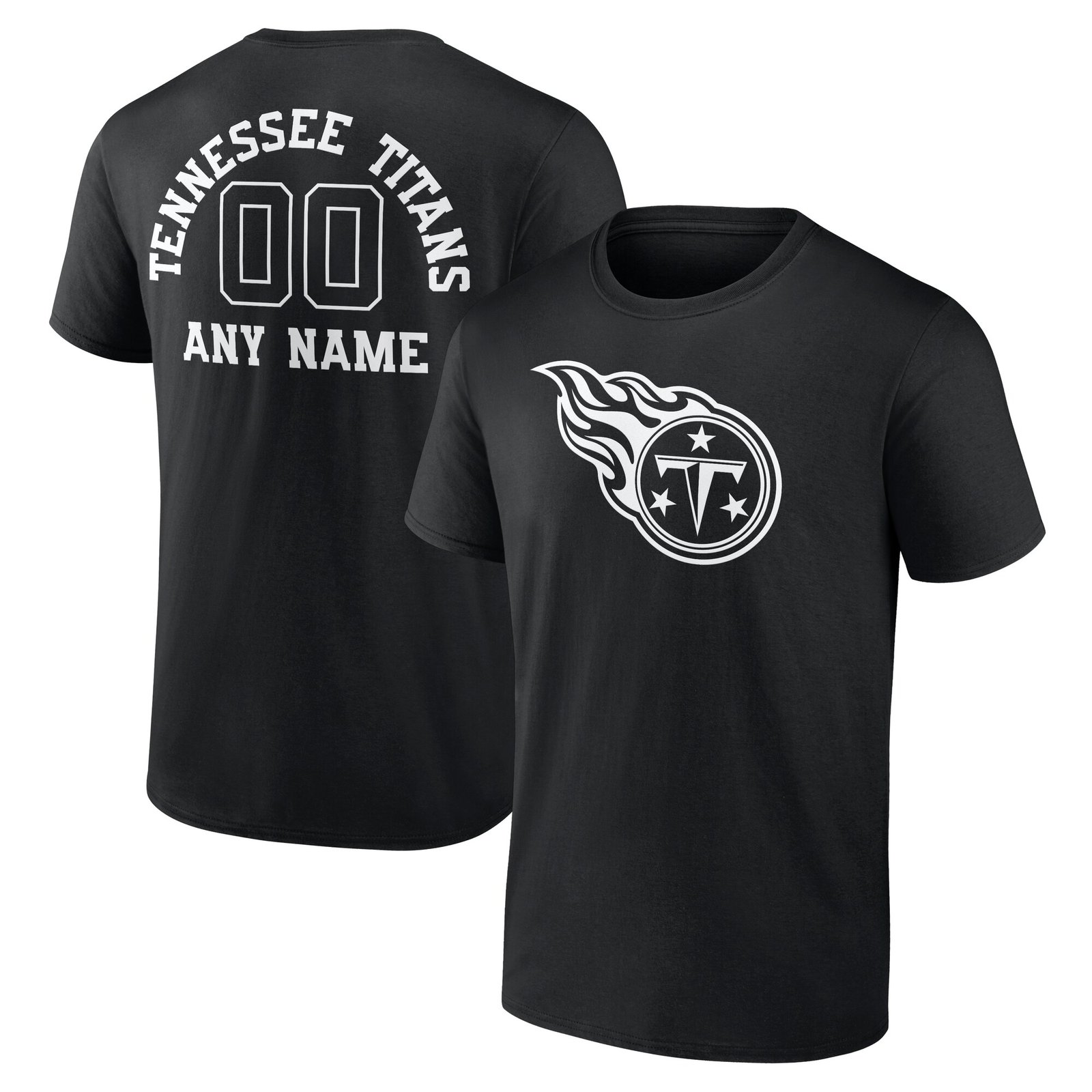 We want fans to celebrate their fandom by customizing and personalizing certain products. For these customizable products, including jerseys, we invite customers to tell us how they would like their preferred name or other text to appear by typing that text into the field indicated. However, just because a customer is able to type proposed customization text into the field and is able to complete the order through the website, not all proposed customization text will be accepted. Please note, Fanatics may reject and cancel any customization order for any reason, including for messages that are deemed offensive or inappropriate. Show your Tennessee Titans pride all season long with this Personalized Name & Number Monochrome T-Shirt. This cozy tee is crafted from soft, breathable fabric for all-day comfort. The bold graphics are the perfect way to demonstrate your Tennessee Titans fandom, whether you’re at the game or just running errands around town.
