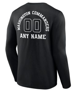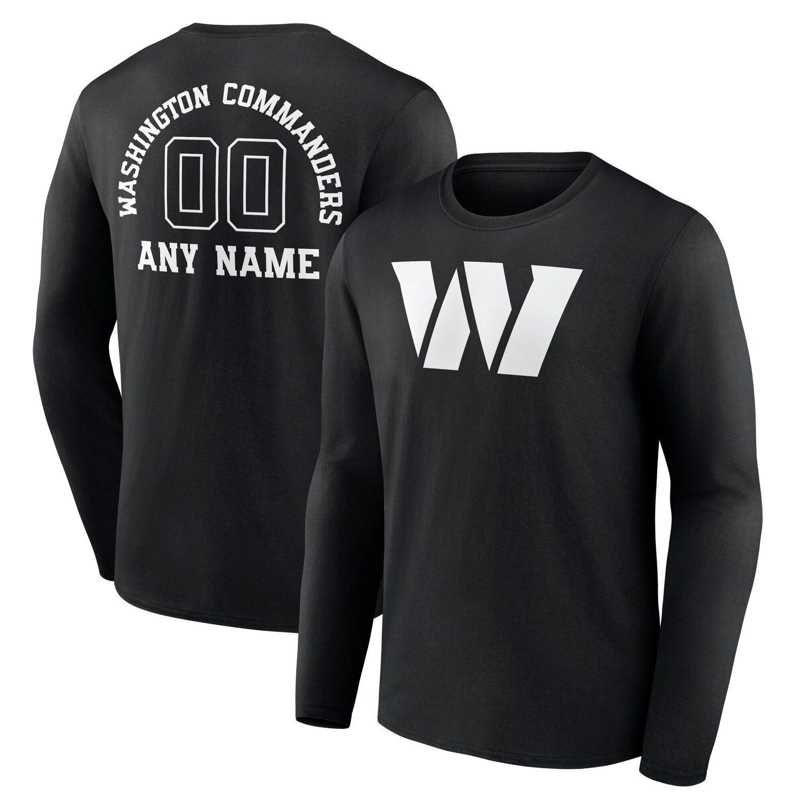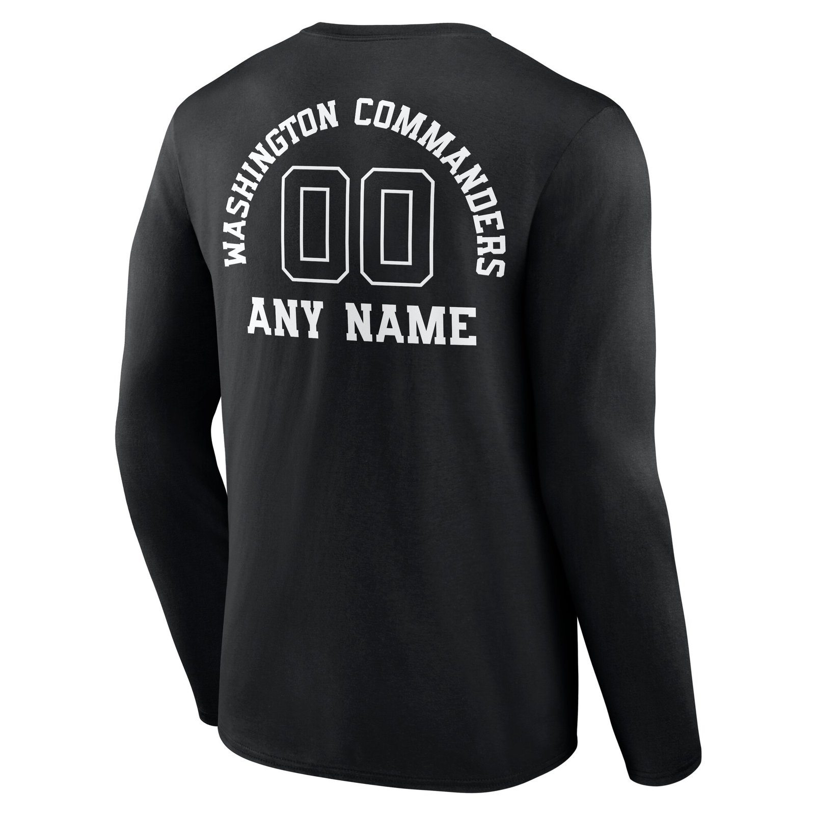 We want fans to celebrate their fandom by customizing and personalizing certain products. For these customizable products, including jerseys, we invite customers to tell us how they would like their preferred name or other text to appear by typing that text into the field indicated. However, just because a customer is able to type proposed customization text into the field and is able to complete the order through the website, not all proposed customization text will be accepted. Please note, Fanatics may reject and cancel any customization order for any reason, including for messages that are deemed offensive or inappropriate. Show your Washington Commanders pride all season long with this Personalized Name & Number Monochrome Long Sleeve T-Shirt. This cozy tee is crafted from soft, breathable fabric for all-day comfort. The bold graphics are the perfect way to demonstrate your Washington Commanders fandom, whether you’re at the game or just running errands around town.
