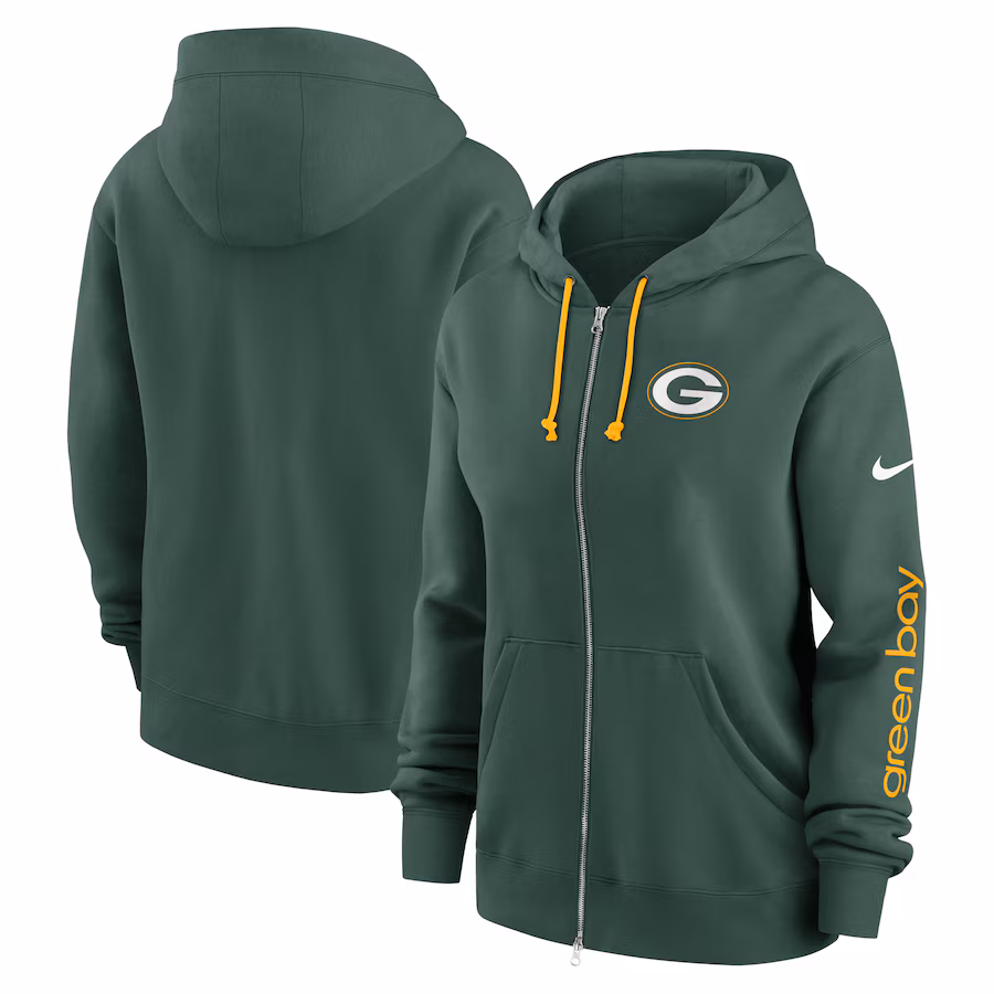 Women’s Green Bay Packers Nike Green Phoenix Hoodie Full-Zip Sweatshirt