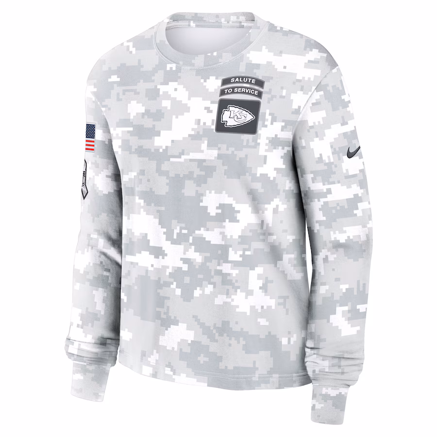 Women’s Kansas City Chiefs Nike Arctic Camo 2024 Salute To Service Long Sleeve T-Shirt