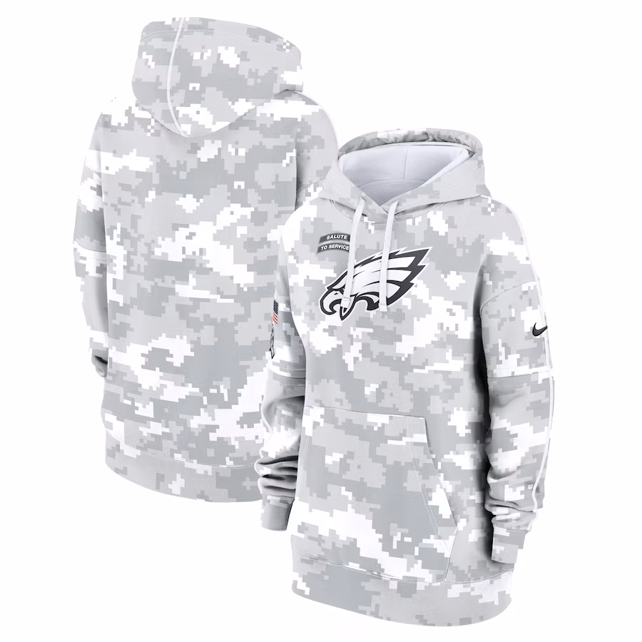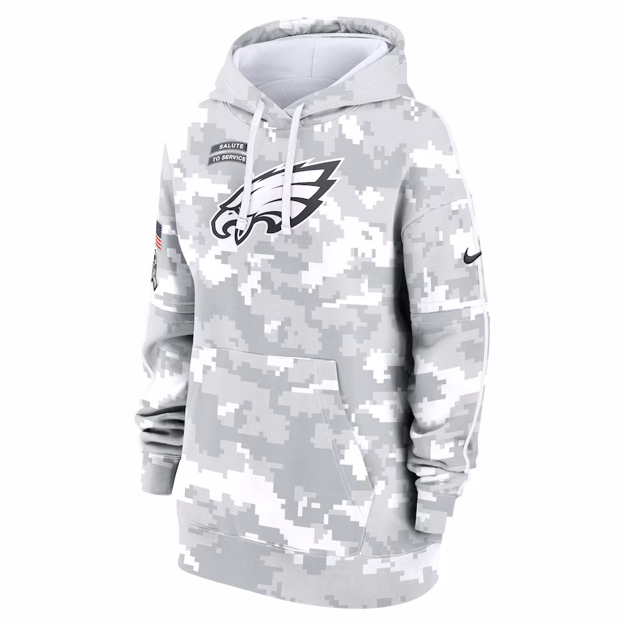 Women’s Philadelphia Eagles Nike Arctic Camo 2024 Salute To Service Club Fleece Pullover Hoodie