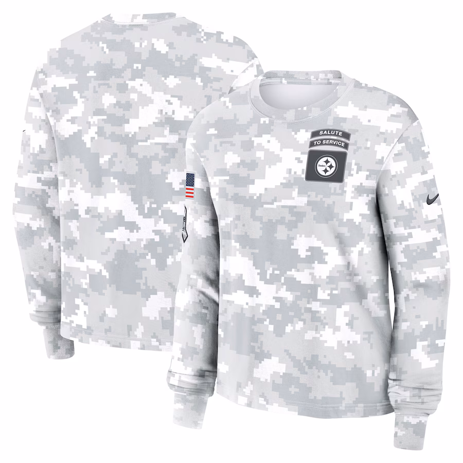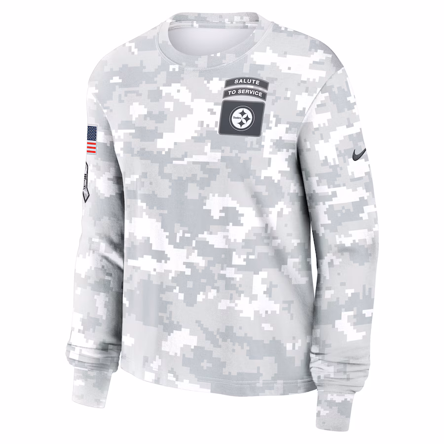 Women’s Pittsburgh Steelers Nike Arctic Camo 2024 Salute To Service Long Sleeve T-Shirt