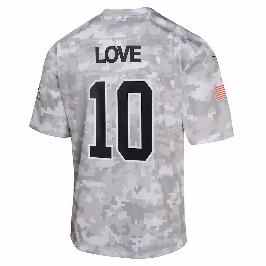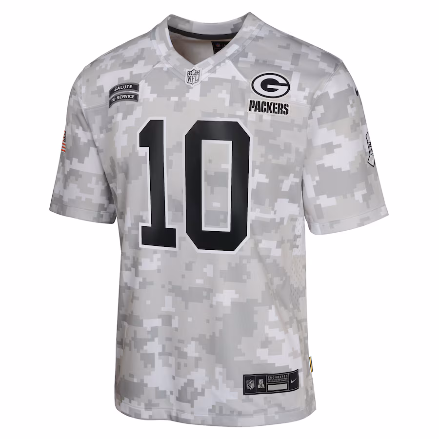 Youth Green Bay Packers Jordan Love Nike Arctic Camo 2024 Salute to Service Game Jersey