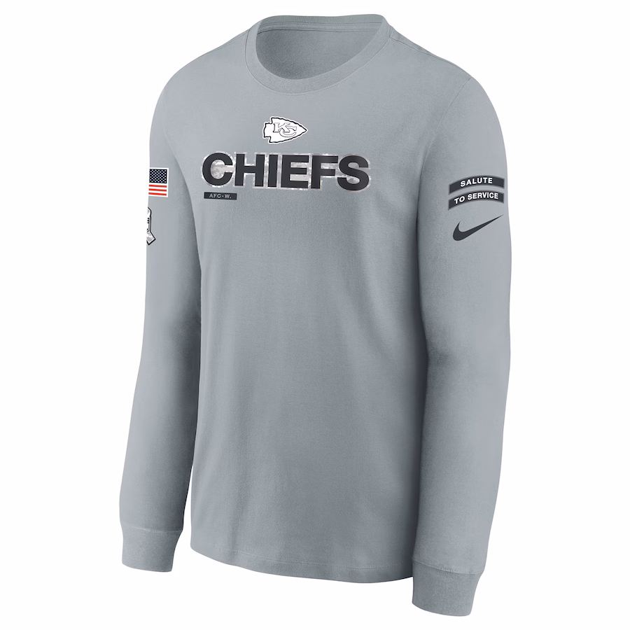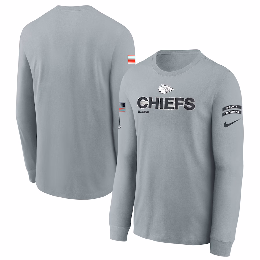 Be the first to review “Youth Kansas City Chiefs Nike Gray 2024 Salute To Service Long Sleeve T-Shirt” Cancel reply